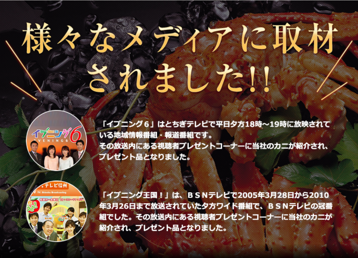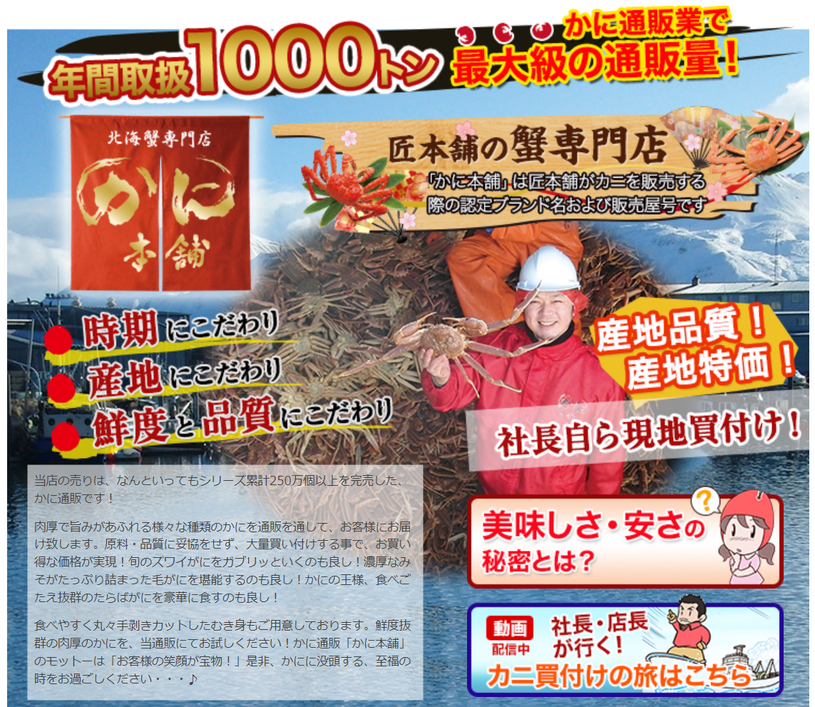 社長自らが「時期」「産地」「鮮度」「品質」にこだわって蟹(かに)を大量買付けしているお店なので、「美味しい&失敗しない&お得」の3拍子が揃っています。